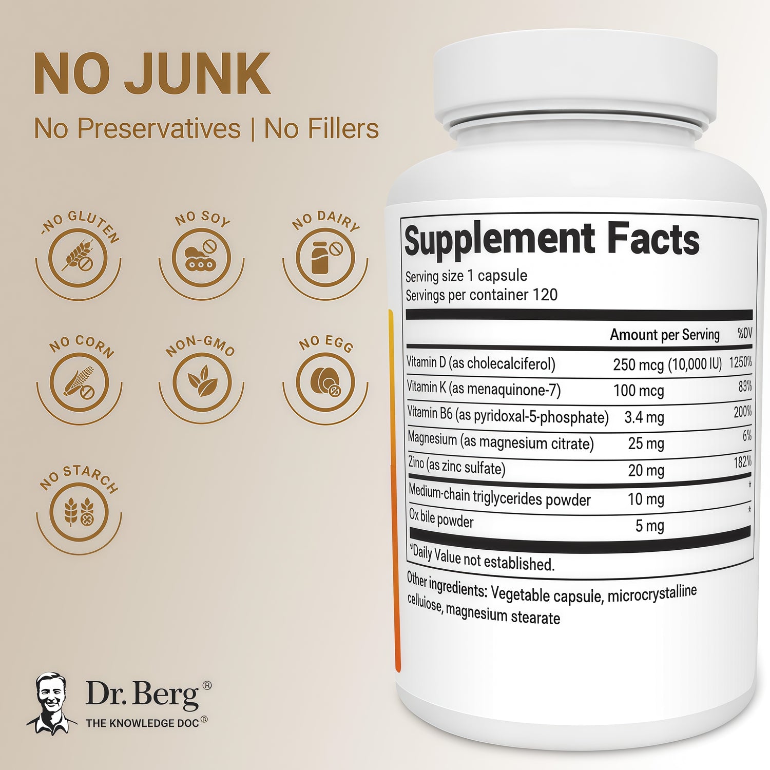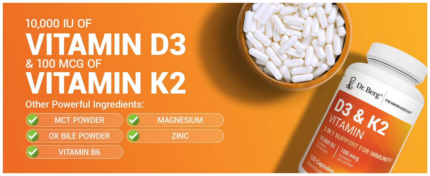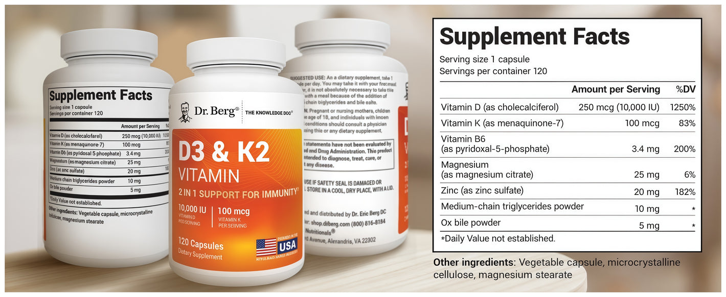 Stop fueling your body with cheap fillers and synthetic binders. Dr. Berg’s D3 & K2 is delivered in 100% Vegetable Capsules and is completely free from soy, gluten, and GMOs. We focus on high-concentration active ingredients that deliver real-world results. Clean, potent, and professional nutrition designed for those who refuse to settle.